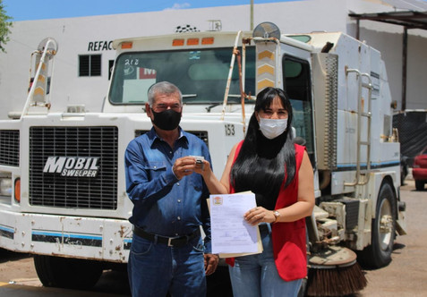 La primera Edil, agradeció el apoyo para la gestión por parte de Alfredo López Gaxiola, quién fue quien contactó y animó empresario Jere Costello, a realizar la donación de dos barredoras con un valor de entre 150,000 y 900,000 pesos cada una, costándole el municipio únicamente los gastos de importación, facturación y traslado de las mismas.