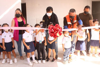 Entrega de baños en jardín de niños en Chinitos, costo del proyecto $374,390.37, por parte del FISMDF, beneficiando a 122 alumnos.