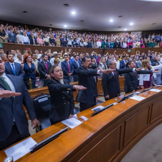 Conducida por Gloria Himelda Félix Niebla, Presidente saliente de la Mesa Directiva, durante este importante acto protocolario, el mandatario estatal saludó de mano a cada uno de los diputados que tomaron protesta este día, felicitando de manera especial a Geraldine Bonilla Valverde, designada nueva Presidenta de la Mesa Directiva, órgano conductor de las sesiones legislativas.