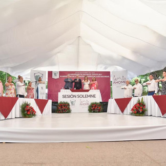 San Miguel Zapotitlán, Ahome, Sin.- En el marco del 415 Aniversario de la fundación de San Miguel Zapotitlán, y el 95 de la dotación de tierras del ejido San Miguel, se celebró Sesión Solemne de Cabildo y Traslado de Poderes Municipales a esta Sindicatura, evento que fue encabezado por el Alcalde de Ahome, C. Gerardo Octavio Vargas Landeros.