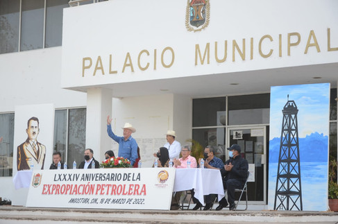 Angostura, Sin.- En un evento muy significativo, autoridades municipales de Angostura, encabezadas por el alcalde, Miguel Ángel Angulo Acosta, mantienen vivo el Día de la Expropiación Petrolera, al conmemorar el 84 aniversario.