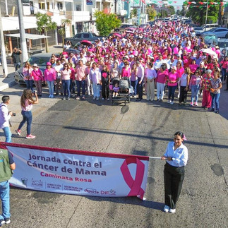 Los Mochis, Ahome, Sin.- Con el objetivo de lograr conciencia en mujeres y hombres sobre la importancia de la prevención para hacerle frente al cáncer de mama, el Ayuntamiento de Ahome convocó a la Caminata Rosa dentro de la Jornada contra el Cáncer de Mama 2024.