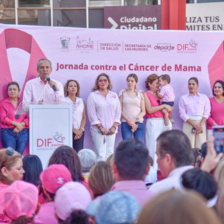 Dicho recorrido inició en las instalaciones del Sistema DIF Ahome y culminó en la explanada de Palacio Municipal, donde el Alcalde Gerardo Vargas dijo que el cáncer de mamaes un tema sensible, lastimoso e incluso penoso, pero con fortaleza y unión familiar se le puede vencer.