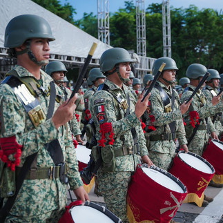 - El secretario de Economía, Javier Gaxiola Coppel en representación del Poder Ejecutivo encabeza el acto cívico en la explanada de Palacio de Gobierno.