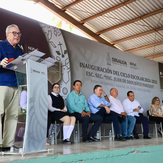 - El mandatario estatal puso en marcha el ciclo escolar 2024-2025 en la Escuela Secundaria Juan de Dios Bátiz Paredes en Estación Naranjo, Sinaloa municipio
