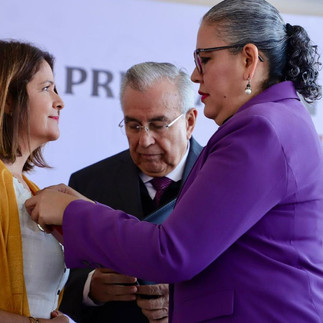"Nuestra galardonada nació en la comunidad de San Marcos, en el municipio de Mazatlán, entre sus méritos y acciones en bien de la comunidad, debe mencionarse que en 2009, mientras la región sur vivía una escalada de violencia, impulsó la conformación de talleres de dibujo y pintura en la plazuela de La Noria, con el fin de promover la sana convivencia entre las niñas y los niños de la localidad, asimismo, organizó una sala de lectura donde los habitantes de la comunidad no sólo pudieron compartir su sentir y vivencias en torno a la violencia, sino también lograron rescatar historias cotidianas y tradiciones locales", externó la Secretaria.