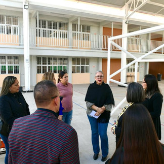 Durante la visita estuvo acompañada por la Subsecretaria de Planeación Educativa, Catalina Esparza Navarrete; el Jefe de Servicios Regionales de Mazatlán, José Juan Rendón, la Subdirectora comisionada del plantel, Elvia Areli Castellanos Morán y la Supervisora Karem Denisse Álvarez, a quien posteriormente visitaron en sus oficinas que están contiguas a la primaria, para revisar la infraestructura física.