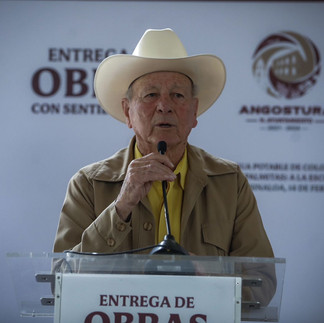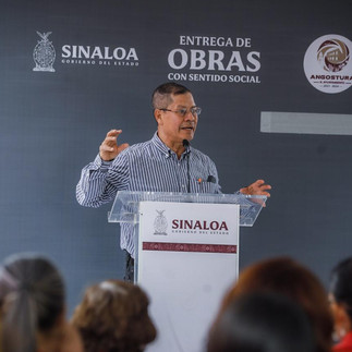 Angostura, Sin.- Durante una intensa gira de trabajo por el municipio de Angostura, el gobernador Rubén Rocha Moya inauguró un paquete de diversas obras de infraestructura urbana por un monto superior a los 14.4 millones de pesos, de entre las que destaca la construcción de una línea de conducción de agua potable para el Centro de Estudios de Bachillerato Agropecuario CBTA 116, el cual carecía de este servicio desde su creación, hace 43 años.